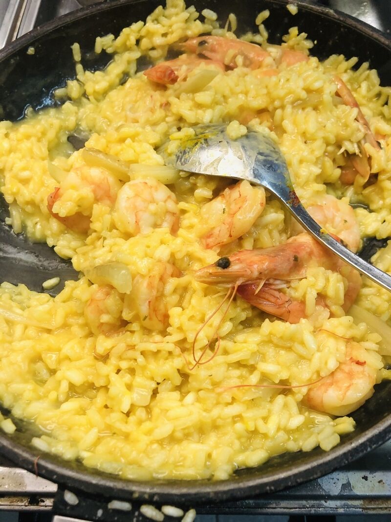 Safran Risotto mit Garnelen und Fenchel Gemüse